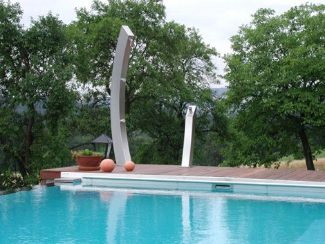 Modern Outdoor Shower is a wonderful and stylish creation of modern art. This sculpture looks like a huge ocean wave and a rising swell into the landscape of your garden.
