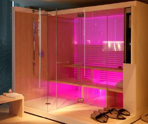 Now, the sauna utilises concealed technology to present this bright, transparent design.