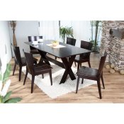 The table is with thick, sturdy legs that add great stability and make sure it stand up while the six brown covered seats add comfort with the curved backrests and the elegantly arched back legs. You will easily enjoy this Malaysian oak dining set that is finished in rich wenge veneer as it is elegant, sophisticated, very beautiful, and truly one of a kind.