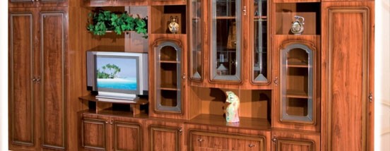 If you need to arrange a stylish and fashionably small and medium in size rooms, then one of the best options is modular wall Venice. In this system, for example, the size of the niche for the TV is 1000 * 560 * 850 cm (width, depth and height, respectively).Thus, such a wall for the living room can accommodate most models of large-format televisions introduced today in the market. And the original appearance of Venice will give the room notes of freshness and modern style.
