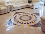 In the production of mosaic different stones are can be used (natural tufa, travertine, marble, onyx, jasper and lapis lazuli. The stone can be sanded and polished, and it can also be worn out; then the color will be muted and the edges of the mosaic will be smooth.