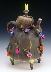 Handbuilt porcelain teapot with polymer clay roses. Non-functional. Limited edition of 10, signed on bottom.