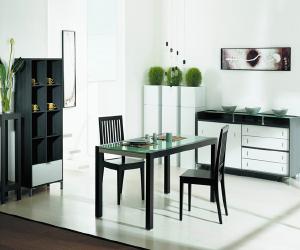 This table fills the bill nicely. Big enough to seat a dinner party but small enough that two can hold hands across it during an intimate dinner, our glass-topped dining table is an exercise in simple elegance.