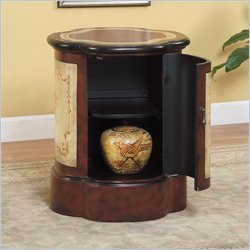 Finished in a beautiful lightly distress faux antique cherry, the end table has exquisite floral hand painted details. This is a table that you will love to have and it wwill add a sense of personality and exquisite beauty.