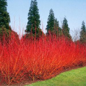 - The fiery orange-red stems are striking in front of evergreens or a bank of snow!