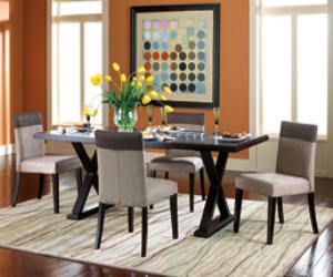 The Piedmont Dining Set features slender, cross-cut lines and graceful espresso finished oak veneers.The set will lend it’s dark, geometric class to your dining space.
