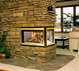 The Pier Wood Fireplace is a three-sided peninsula style fireplace that is perfect for a room divider with a spectacular view of the fire from all three sides. This is not only eye pleasing because of its unique design and position, but also because it is just an elegant fireplace that is very inviting to everyone in your home.
