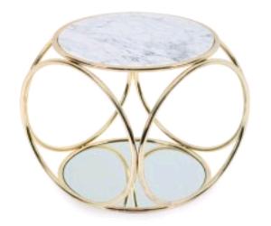 The Ring Table is topped with a marble or clear glass surface.
