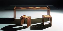 Its spectacular amalgamation of five different woods is apparent through the layered effect employed by the Italian designer Steven Hall.