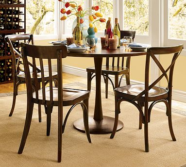 Supports a hardwood top smoothed with mahogany veneer and a hand-applied finish.