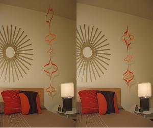 This abstract work of art is pre strung and ready to hang with a matching ceiling mounting plate and is available in 5 color combinations. Hardware is included. The Saucer is made in the USA and is recommended for indoor use only.