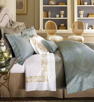 This beautiful and regal Preston Duvet Cover and sheet set is truly heavenly. Woven in Italy, the magnificent 560 thread count cover has an intricate pattern emerging subtly to the surface from its cool blue background.