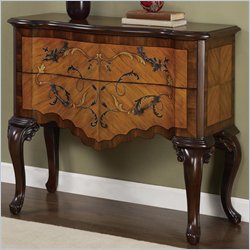 Two pull drawers and cabriole legs pair with a distressed mahogany finish to complete the elegant look and appeal of the Masterpiece Serpentine Console Hall Chest.