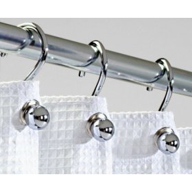 Uniquely styled, these shower curtain hooks will add polish to your bath decor. A set of 12 chrome hooks, designed with a decorative ball at the end, glide easily on the rod and provide an easy way to hang shower curtains. Rings wipe clean by hand. Imported. 3.25L”.