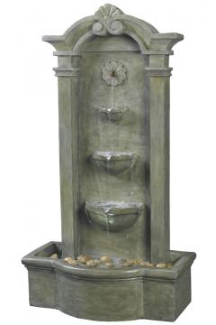 Water flows through a 3-bowl waterfall on the Sienna Outdoor Floor Fountain, enhancing the sound of flowing water. To wonderfully accent your outdoor accessories add this gorgeous, mossy stone finish fountain that gives an authentic look.
