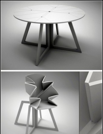 It is slightly unusual, when the owners decide to remove the table out of sight, so it does not bother to move around the apartment, it is small by default. Thus, tabletop device consists of 18 segment-“puzzles”, and if necessary they can be folded pile, and then a large table becomes a little stand under the bowl, but it can also be pushed for a cabinet or under the sofa. Or else, you can design out of these segments a decorative piece of furniture resembling a half-open flower. And then, it will not be a table but some shelve, or even stand under a bowl, but it will look more than the original stand.