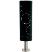 The table lamp gives a playful, modern style for a contemporary design accent and a nice fabric shade that will add elegance and a fun factor to your home and the room that you place this lamp in. The pole is a sturdy metal base with a satin steel finish that has a silk like black fabric shade that looks amazing.