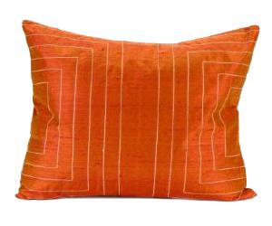 Bold orange silk is complemented by white embroidery in this impressive modern pillow. The Streams Silk Pillow adds excitement and elegance to any bedroom with its captivating look and luxurious 100% dupioni silk construction.