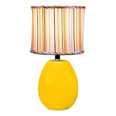 Round drum shade with a striped design offers a classic touch you’ll love. Glass melon base is illuminated from inside with a candelabra bulb for a soft glow.