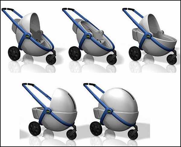 But the humor is enough to pinning up. Perhaps the author of the concept Stroller is rights, and such a “hat” whose “protective covering” can be rotated so as carefully as possible to close the baby from the sun, will be the safest stroller than any other design. Firstly, in a “bunker” you can carry quite babies, turning the child face-to-mother, and older kids, turning the “visor” back to allow the baby himself on the road. And secondly, when Stroller is not used for legitimate purposes, it is easy to fold, so that it occupied the apartment as a possible location.