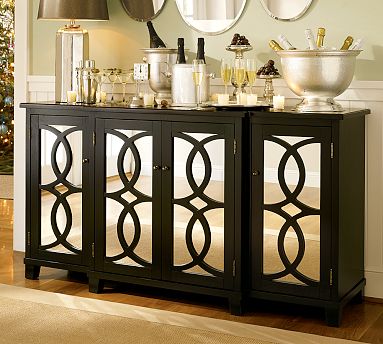 The Terrace Mirrored Buffet is a gorgeous addition to your home and dining room or kitchen. Bring deco glamor to holiday entertaining with this breakfront-style buffet, which features mirrored doors and a hand-joined fretwork of overlapping rings.