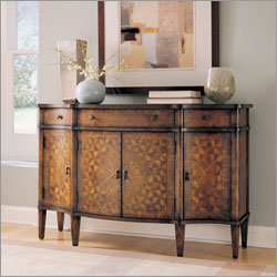 Express your individual decorating style with the distinguishing Three Drawer Console. This beautiful and refined console is highlighted by a fabulous and elaborate geometric veneer pattern.