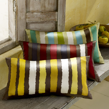 Abstract expressionism on woven silk, these pillow covers are spot clean and imported. The Tin-Stripe Pillow Covers are great for any living room or any room in your home in order to decorate any part of your home that you wish.