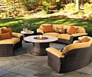 This outdoor furniture set that is designed by Frontgate and is made with an all weather fiber that is protected with UV inhibitor so that the rich bronze color will never fade.
