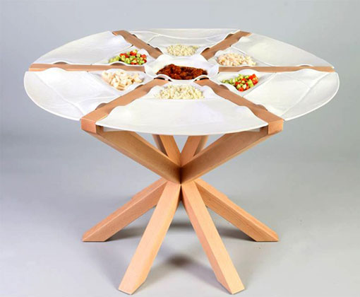 We really liked this table from the designer Elad Kashi. Although at first sight it looks quite normal dining table, but its highlight is the top. The top consists of several removable ceramic plates that can serve as plates for various garnishes. Such table calls for joint lunch or dinner. Isn’t it the best way to establish contacts?