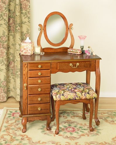 This vanity table set is an excellent way to arrange your getting ready routine. It can be placed in the bedroom and provide all necessities of women. It is made of an oak tree.