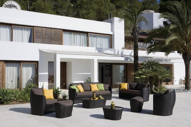 Venezia Outdoor Furniture Collection includes dining and lounge furniture. It is constructed from aluminum and covered with synthetic fibers.