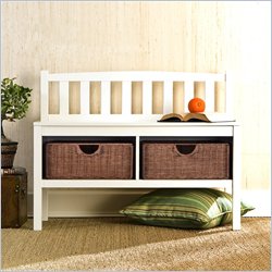 This low-profile contemporary white storage bench goes well at the end of a bed, in a bathroom, entryway, or living room. Finished in frost white, the White Bench with Brown Rattan Baskets is built crafted from solid wood construction and has two rattan baskets perfect for storing all your necessities.