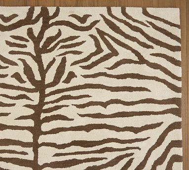 Rendered in warm ivory and pale espresso stripes, the hand-tufted wool Zebra Rug brings a bold look to your room.