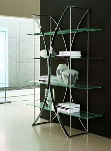 This metal bookcase features aluminum finishing and shelves of tempered frosted glass. Add this item to your home office today for a professional and stylish look! Dimensions (1) : 185cm H by 36cm P by 160cm L Product available @ www.contemporaryfurniture.com