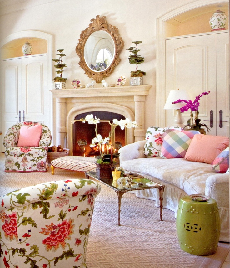 Vibrant print is a bold choice for a small, seemingly nondescript room. Big flowers randomly scattered on the surface bring revival in modern interior design project. The color scheme can be maintained strictly in gray color with the addition of brown and red elements in need of heat. Variety of prints found on the carpet and pillows is another feature of good design.