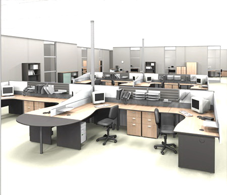 Another option of mixed plan: not reaching the ceiling, but rather high walls, creating around the workplace a similarity of small office. Here it is easy to control employees, but they have a great sense of privacy.